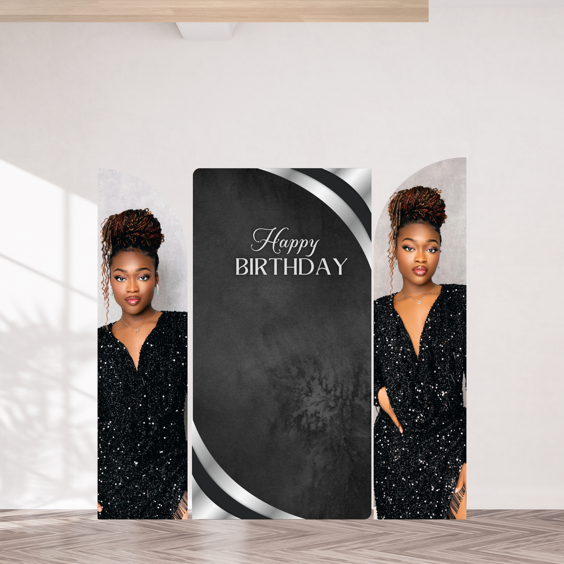 Custom Photo Birthday Backdrop | Personalized Picture Banner with Black and Silver Design | UK